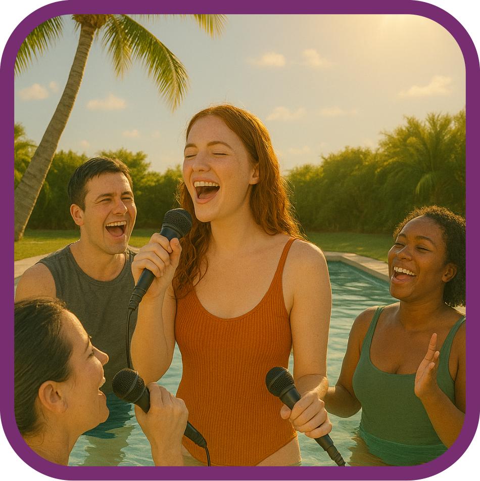“Tu dia soñado comienza en nuestra alberca, renta, disfruta y sumergete en la divercion” Karaoke Acuatico